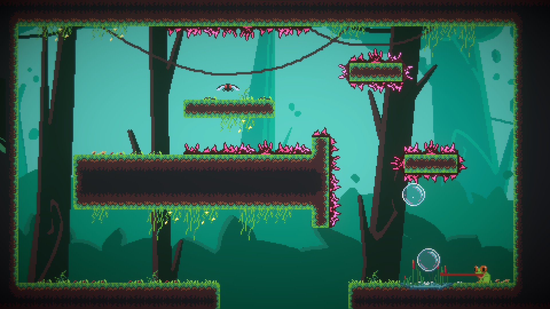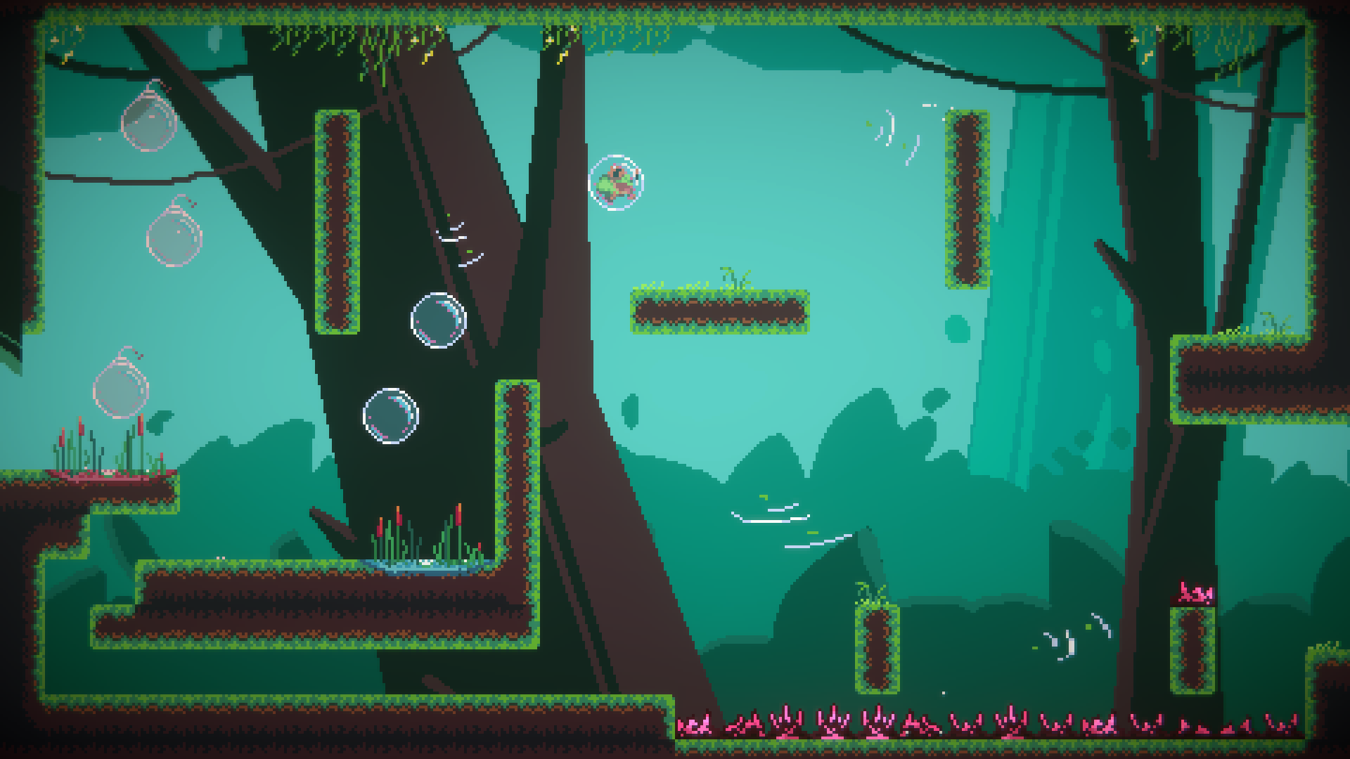 Vous vous rendrez rapidement compte que le marais est rempli de bulles qui volent dans les airs. Entrer dans l’une d’entre elles vous permet de la contrôler. Utilisez cette technique pour prendre de la hauteur et atteindre des endroits inaccessibles.